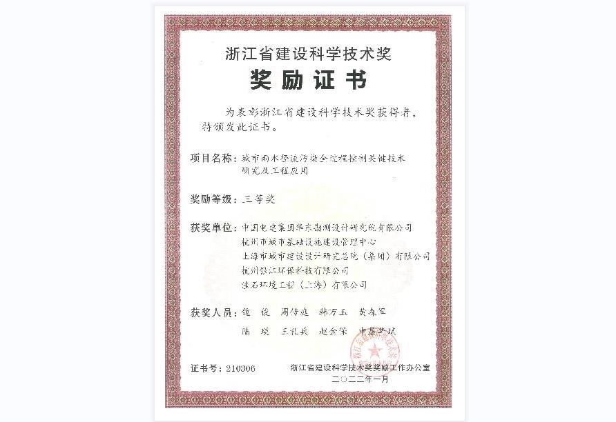 銀江環(huán)保《城市雨水徑流污染全過(guò)程控制關(guān)鍵技術(shù)研究及工程應(yīng)用》獲浙江省建設(shè)科學(xué)技術(shù)三等獎(jiǎng)。