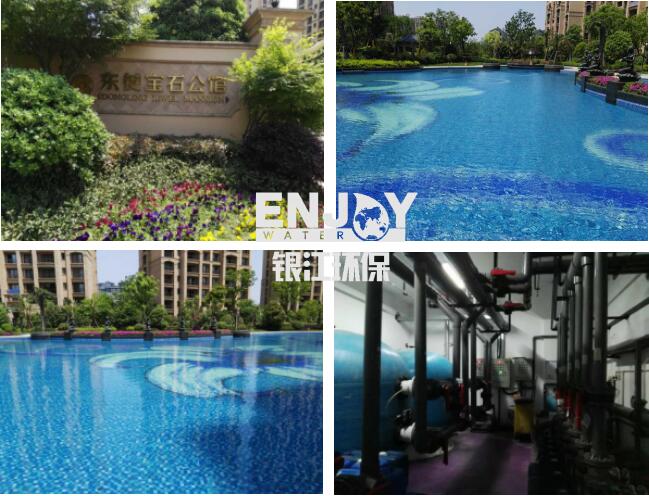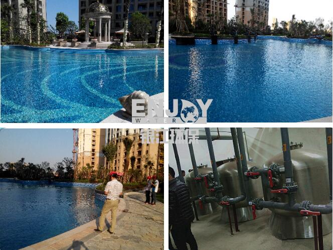 我公司承接該項目的室外景觀泳池水處理工程,泳池總水量約為460m3,循環時間約為6小時。主要采用循環泵站、水凈化站、消毒系統、水質監測系統。