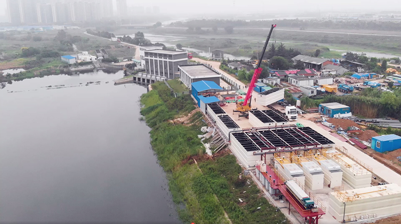 項(xiàng)目簡介:新興圩泵站位于南京市江寧區(qū)。泵站主要收集將軍大道以東、童橋路以南、蘇源大道以西、正方大道以北區(qū)域的雨水,匯水總面積3.35平方公里,前池蓄水量約3萬立方。新興圩泵站因年久失修已無法正常運(yùn)行且缺少相應(yīng)的污水處理設(shè)備,積存雨污水外排對秦淮河水質(zhì)造成嚴(yán)重影響。我司響應(yīng)政府需求,為該污水泵站配套6000m3/d KtCQ水體快速凈化器,出水達(dá)到《城市黑臭水體整治工作指南》中消除黑臭標(biāo)準(zhǔn),同時(shí)提供運(yùn)維服務(wù)。