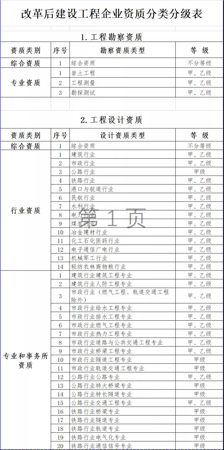 2.改革后建設工程企業資質分類分級表