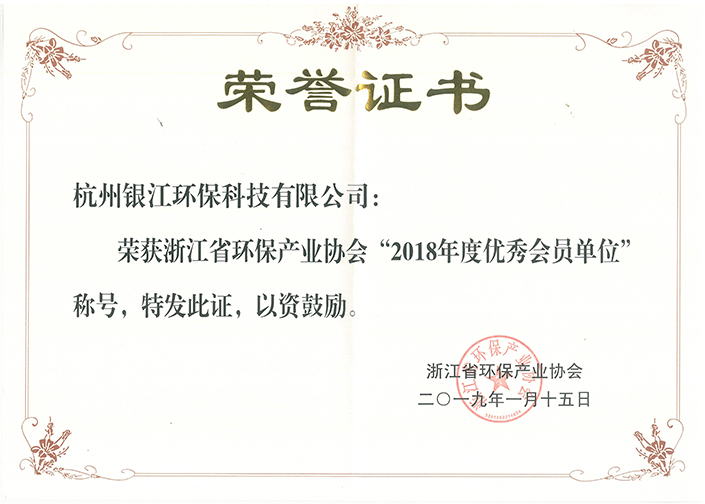 銀江環(huán)保榮獲浙江省環(huán)保產(chǎn)業(yè)協(xié)會“2018年度優(yōu)秀會員單位“稱號發(fā)布日期:2019-01-16
