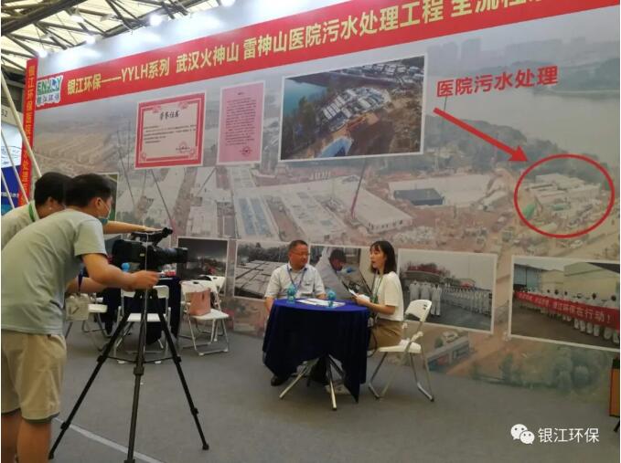 銀江環(huán)保是武漢火神山雷神山醫(yī)院污水處理工程的全流程系統(tǒng)供應(yīng)商,醫(yī)院污水處理系統(tǒng)YYLH系列榮登第21屆中國(guó)(上海)環(huán)博會(huì)首發(fā)平臺(tái),正式亮相。YYLH首發(fā)由銀江環(huán)保葉董與兩位抗疫英雄王立軍、付宇主持剪彩,現(xiàn)場(chǎng)氣氛熱烈,并與業(yè)內(nèi)同行和潛在客戶進(jìn)行了的交流互動(dòng)。葉董現(xiàn)場(chǎng)回答了多位客戶對(duì)我司YYLH系列的提問,并接受了多個(gè)媒體針對(duì)火神山、雷神山項(xiàng)目的采訪。
