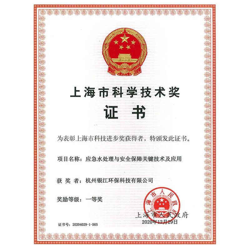 2020年度上海市科學技術獎近日公布,銀江環保與同濟大學、上海市政工程設計研究總院聯合申報的《應急水處理與安全保障關鍵技術及應用》榮獲科技進步獎一等獎。