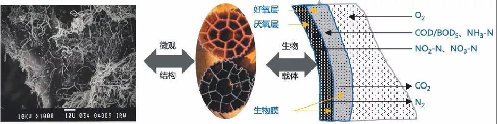 KtIC一體化污水處理設(shè)備,采用多級(jí)式MBBR & SBBR組合工藝,結(jié)合國(guó)內(nèi)外先進(jìn)的高效溶氧裝置、高效流化傳質(zhì)系統(tǒng)與均質(zhì)布水系統(tǒng),通過培育附著在比表面積超過800 m2/m3的BIO-FORM®納米生物載體上的混合兼性菌種,構(gòu)成BIO-NET生態(tài)系統(tǒng)。其以革蘭氏陽(yáng)性芽孢桿菌(Bacillussubtilhls)為主、光合細(xì)菌 (Photosyntheticbacteria)、硝化、反硝化細(xì)菌等混合菌劑為輔的高效菌體,高效降解污/廢水中的總氮、 COD及氨氮等污染物,具有高效、耐沖擊、施工簡(jiǎn)便、占地少等技術(shù)優(yōu)勢(shì)。